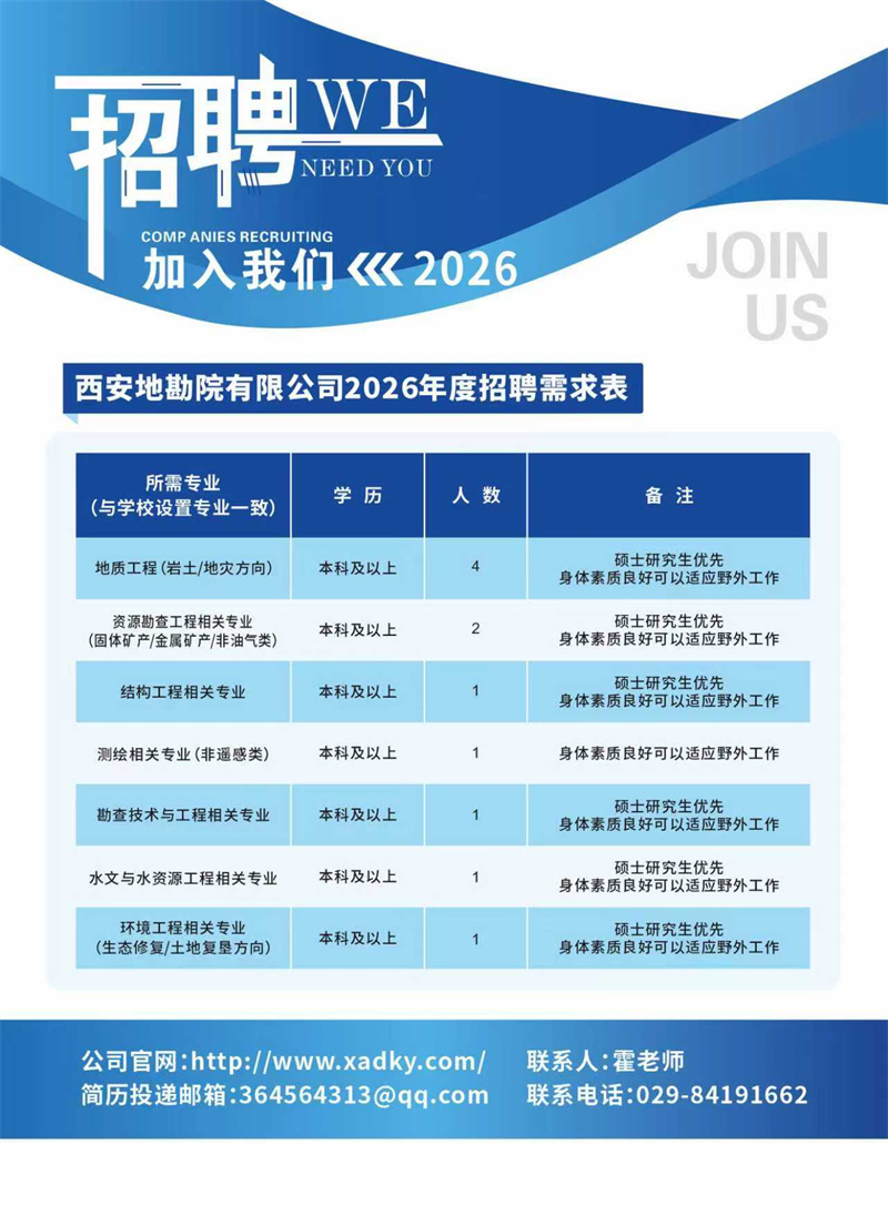 西安地质矿产勘查开发院有限公司2026年招聘简章摘要